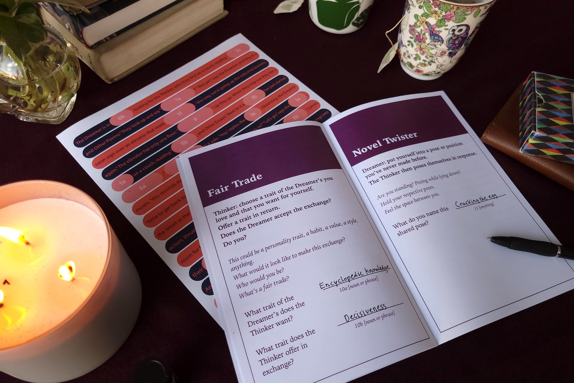 Lucid Scheme is a journey of playful co-creation for two. This downloadable PDF kit takes you through laughter and curiosity to a place of understanding, culminating in a story that is personalized by your choices.