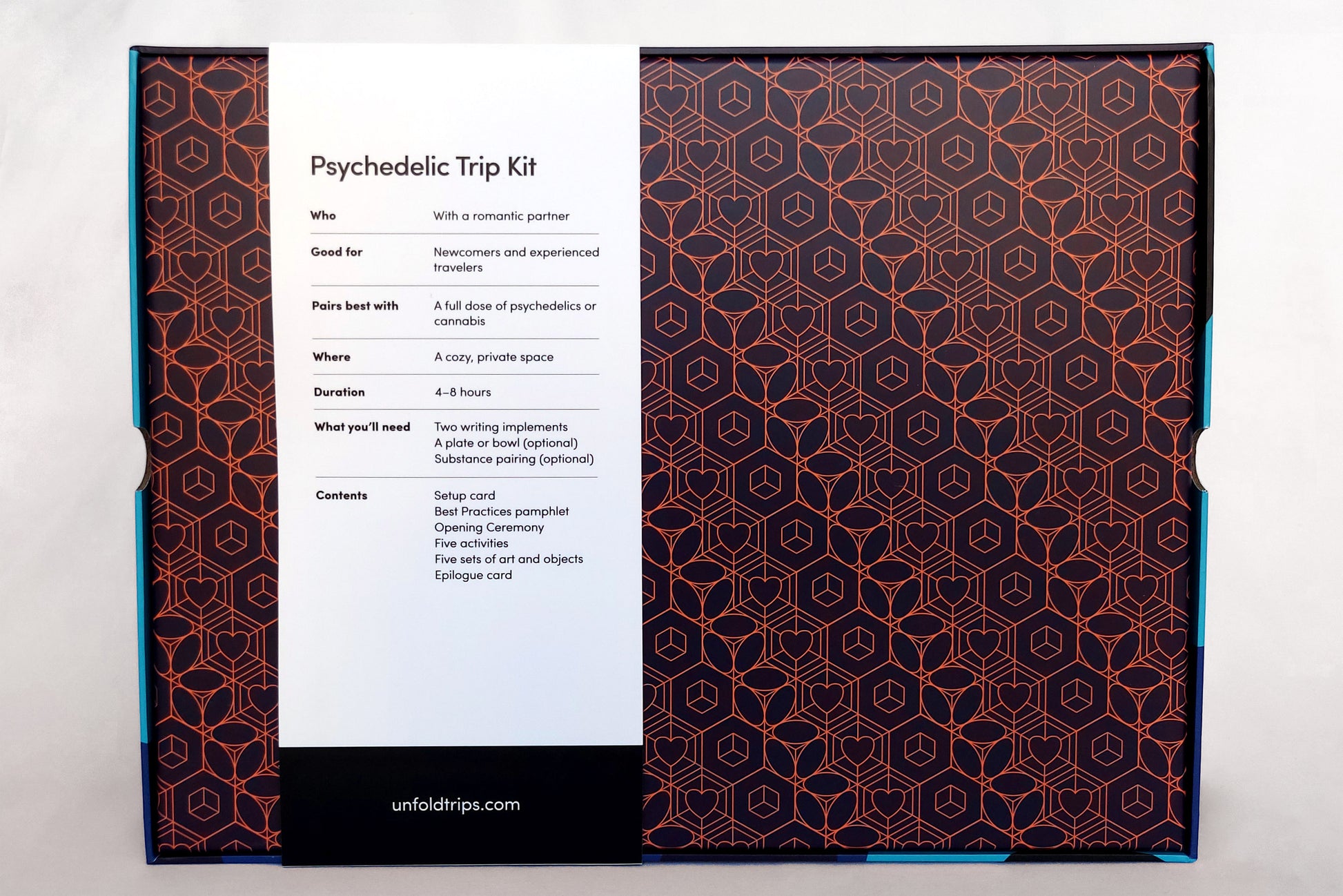 This kit contains everything you need for a trip – apart from any substance you wish to pair with it. Pick and choose from activities, objects, and guidance intended to support a playful journey with: